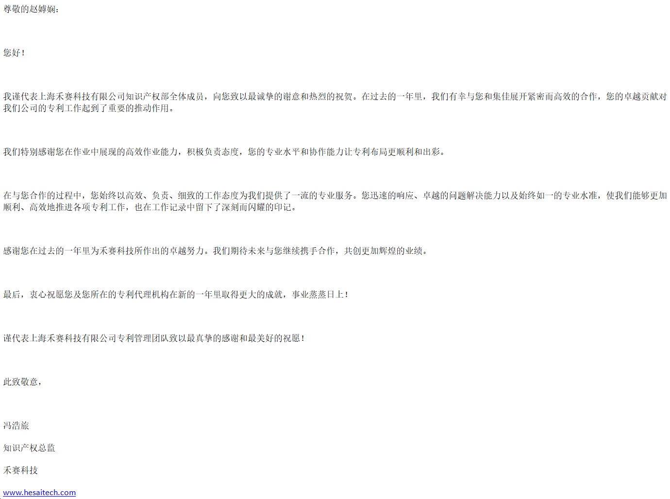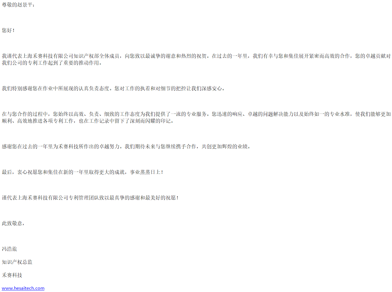 新年伊始,集佳喜获来自客户上海禾赛科技有限公司的感谢信,对雷火官网上海分所提供的优质服务表示感谢。